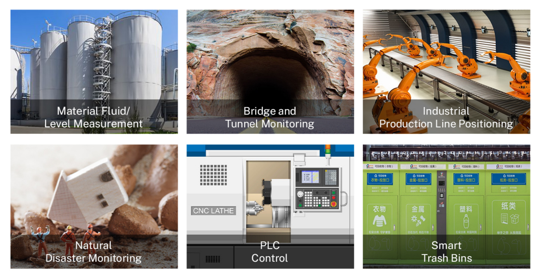 Construction Machinery Environmental Monitoring Industrial Automation Logistics & Warehousing Medical Technology Packaging Industry Security & Infrastructure Monitoring